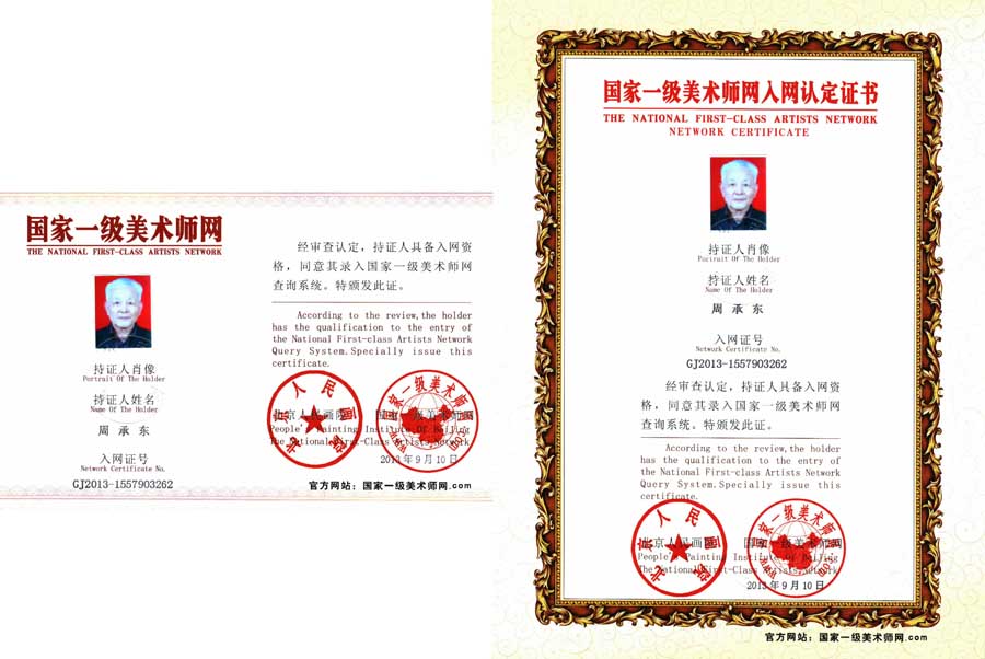 周承东,笔名怡翁,1941年12月出生,汉族,中国共产党党员,大学毕业,安徽宿州人。现为:中国书画研究院院士,九州枫林国际书画艺术研究院院士,北京华夏国艺书画院高级书画师,北京而康书画院客座教授,中国文人书法家协会会员,中国艺术名家协会会员,画圣吴道子艺术馆馆员,中国书画艺术家创作中心理事。