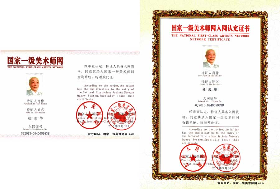 杜若华(1929.1—)字文锦,号鹤山翁、愚公,四川蒲江县人,历任小学校长,初高中数学教师等职。书善楷隶行草,画长写意花鸟山水。其书画作品、诗词、文、联的创新与时代精神十分突出,屡获全国各类金奖(含特、一等奖)就达140多次,最近又荣获“2013首届华人文化艺术最高荣誉‘金紫金奖’”等。入编各类典籍辞书《1949—2000中国美术选集》、《世界美术大典》、《中国学术大百科全书》等已达350多部。先后被海内、外数十个艺术团体聘任为荣誉院长、终身名誉主席,被授予“中国杰出人民艺术家”, “人民艺术大师”、 “2010世界华人艺术领袖”、 “中印艺术交流大使” 、“中国文化和平大使”等荣誉称号。还聘为《中国艺魂(纪念辛亥革命100周年特刊)》的封面人物,中央党校《领导干部创新社会管理的理论与实践》大型文献特约编委等。现为中国诗书画联盟网终身名誉主席、中国国际艺术网艺术顾问、宋庄国际书画院终身院长。出版有个人专辑《丹心映晚霞——杜若华诗文书画作品集》、《中国最具收藏价值艺术家》和《中国艺术名家》等。不少诗书画作品已经成为时代经典名作,将永载史册流传后世,极具学术价值与市场潜力。点击“杜若华”或登陆“杜若华官方网站”,将有更多了解。