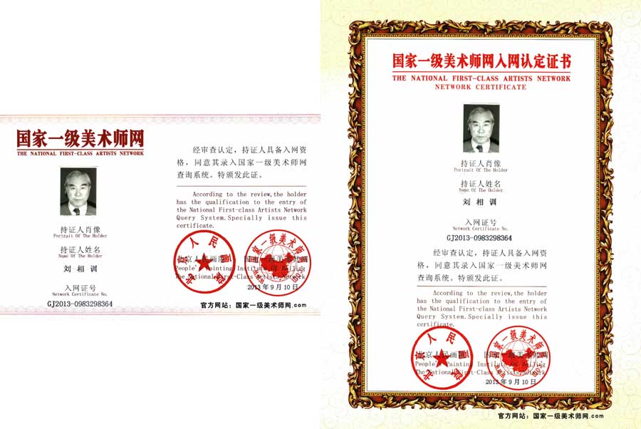 刘相训,字浩如、誉称虎侠、教授、一级美术师。斋号“牧虎苑”。系中国美术家协会会员、中国民族艺术家协会副会长、国际ISQ9000A书画艺术资格认证中心副主席、中国艺术工作者协会终身院长、感动中国文化人物、中国国际文化艺术使者、中印艺术交流大使、辽宁中科艺术顾问、广东林中宝公司艺术顾问、清远诗书画院首席顾问、中国国际艺术网艺术顾问、大千书画院院长、御青书画院院长、海峡两岸书画艺术顾问、中国民族文化研究会副会长、中国书画研究会专业副会长。