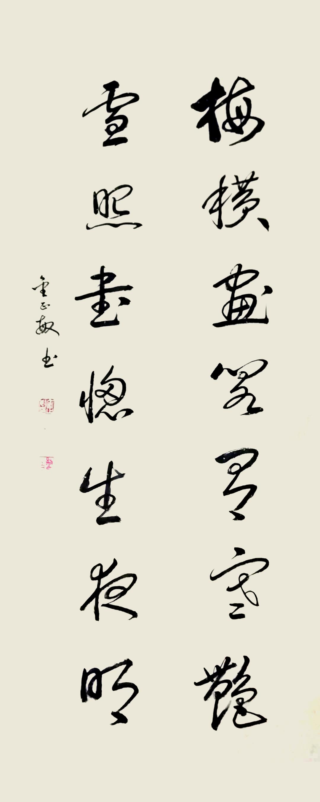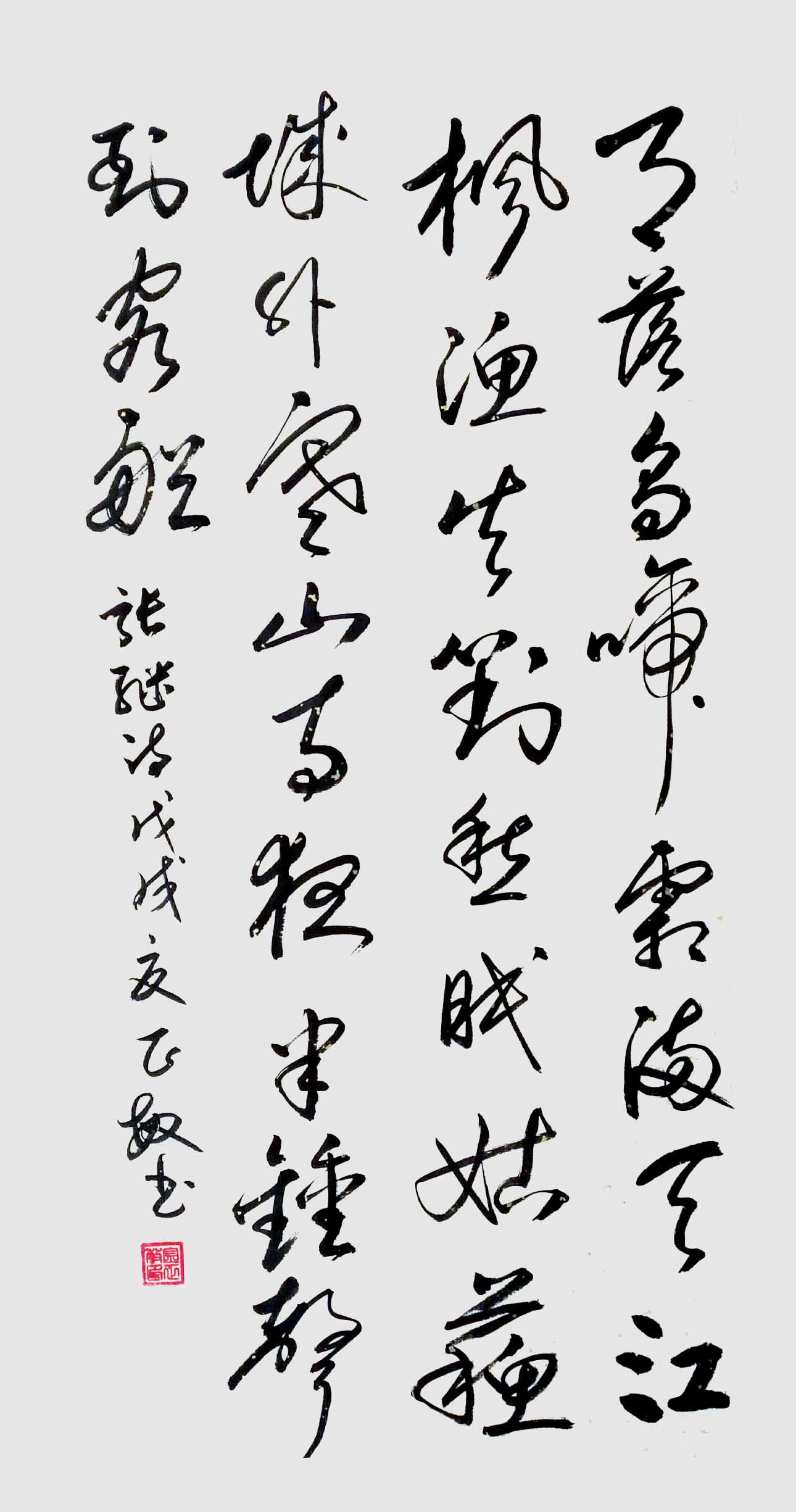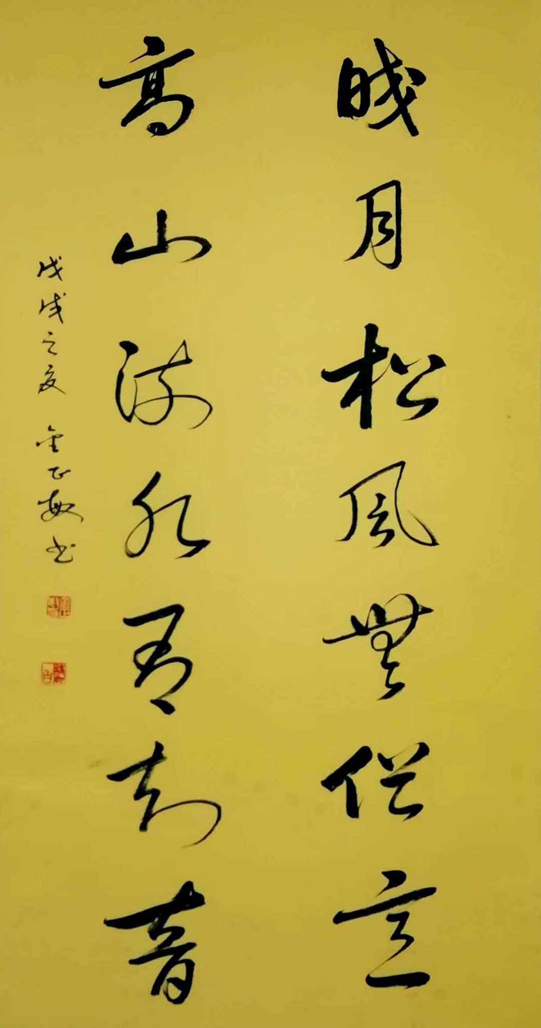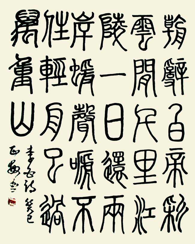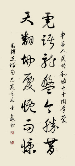 是从八十年代开始,我不知不觉踏上了书法路的长途跋涉,最初苦练隶书,后入欧体,行书,职教工作退休后,主攻草书等字体,不断地努力着。毅力、耐心伴随着我,在勤于临池中去感悟真谛,丰富学养,对自然的热爱,对人生、对世事的体会,使笔墨充满欢乐。