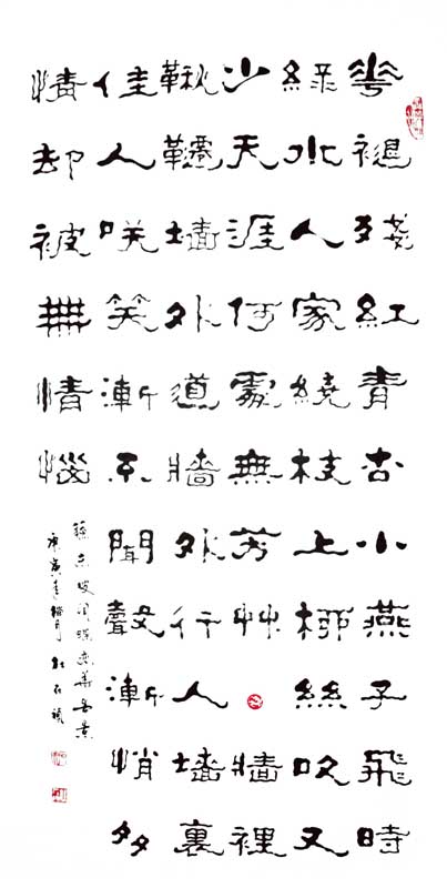 工作之余,怀抱砚田,幸蒙贤哲启迪兼得乡风包孕。师从谭公资九、高公小岩,立雪程门,砚耕不辍,先学颜柳欧赵,渐及三代金石,下迄明清近代,朝斯夕斯,多创鸿篇巨制,又作玲珑小品。常为碑版篆额书丹,也应报章约稿刊载。诸体之中尤长篆隶。飞翰着字,取用谨慎,未敢妄自制奇,故做玄妙,以欺世人。