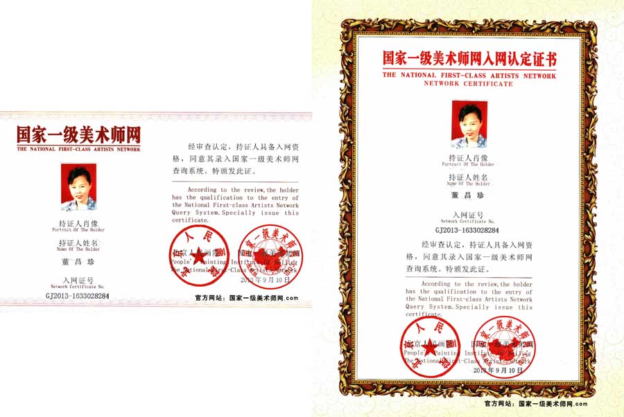 董昌珍,女,1952年生于重庆。1994年结业于中央美术学院国画系,1998年研究生毕业于中国书画函授大学国画系,2010年结业于中国美术学院岩彩画研究创作班。曾先后师从黄均、郭怡琮、蒋采萍、胡勃、何家英等著名艺术教育家。现为中国当代艺术协会副主席、中国艺术学会常务委员、中国书画学会艺术委员、中国工笔画学会会员。