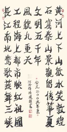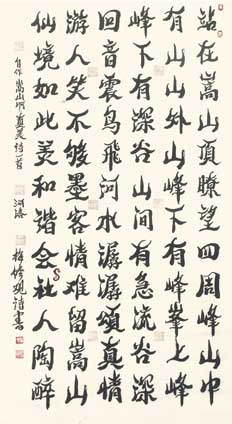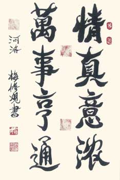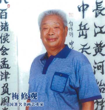 梅修观,艺名松冠,1942年生,河南孟津人,中学退休教师。本人喜诗爱画擅书法。书法作品多以自作诗文佳句和风格独特的多元体书法相结合的艺术风貌获奖、展出。先后入编历史巨著《百年经典·中国书法全集》、《中华世纪之光·中国书画大展作品集》等权威典籍。