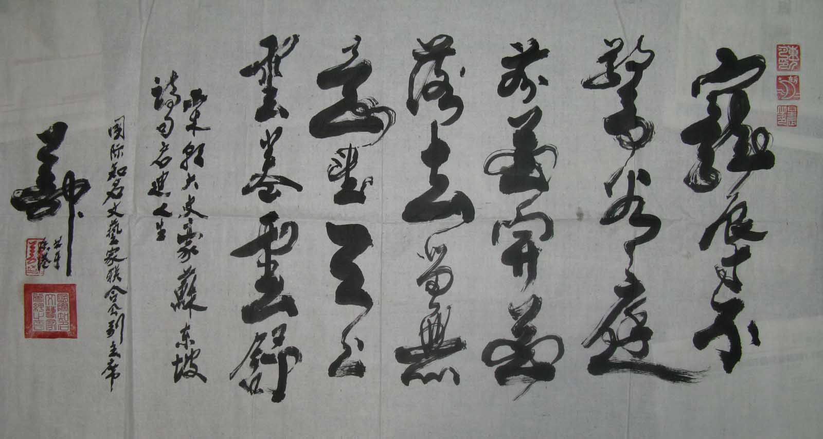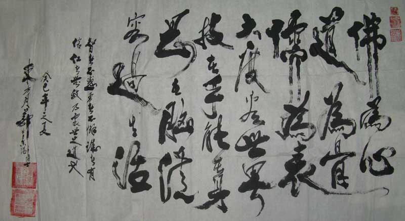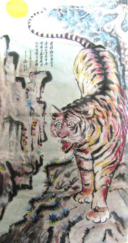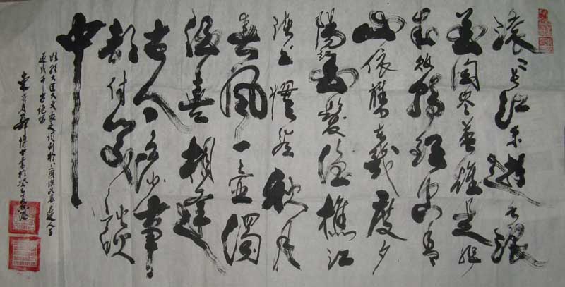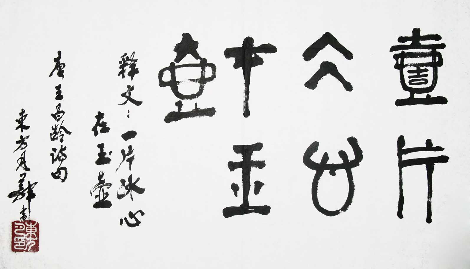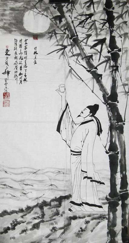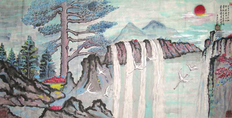 他是一位卓有成就的诗人作家和教育家,更是一位承前创新的中国书画家。他的诗文清新俊逸;他的书法典雅清新,劲遒潇洒;他的画,意势相融,耐人寻味。尤其是他把诗书画融合其中,有如天马行空般神捷,有如流水行云般抒情,有如电闪雷呜般苍劲,诗书画三绝,天人合一,令人陶醉和沉思。如他的《龙之赞》《鹰之赞》《福之思》《竹之颂》等作品都把诗书画融成一体,意味无穷,充分表达了中国书画艺术创新雄浑之气势!