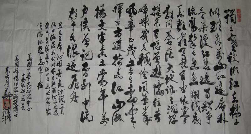 想起这诗句,就使我想起回到地球东方的朋友曾绅先生。我是在上世纪九十年代,在《国际华文日报》纽约的茶话会上认识他的,他在美国是享有诗书画三赢艺术家美誉的名人。他英俊潇洒,即席吟诗挥毫,笔下生花,龙飞凤舞,我们美国朋友都惊诧这位中国才子神思敏捷,才华横溢。此后,曾绅先生在美国多个城市举办诗书画展,受到极大好评,从此我成为他的诗书画崇拜者,对他产生敬仰之情。
