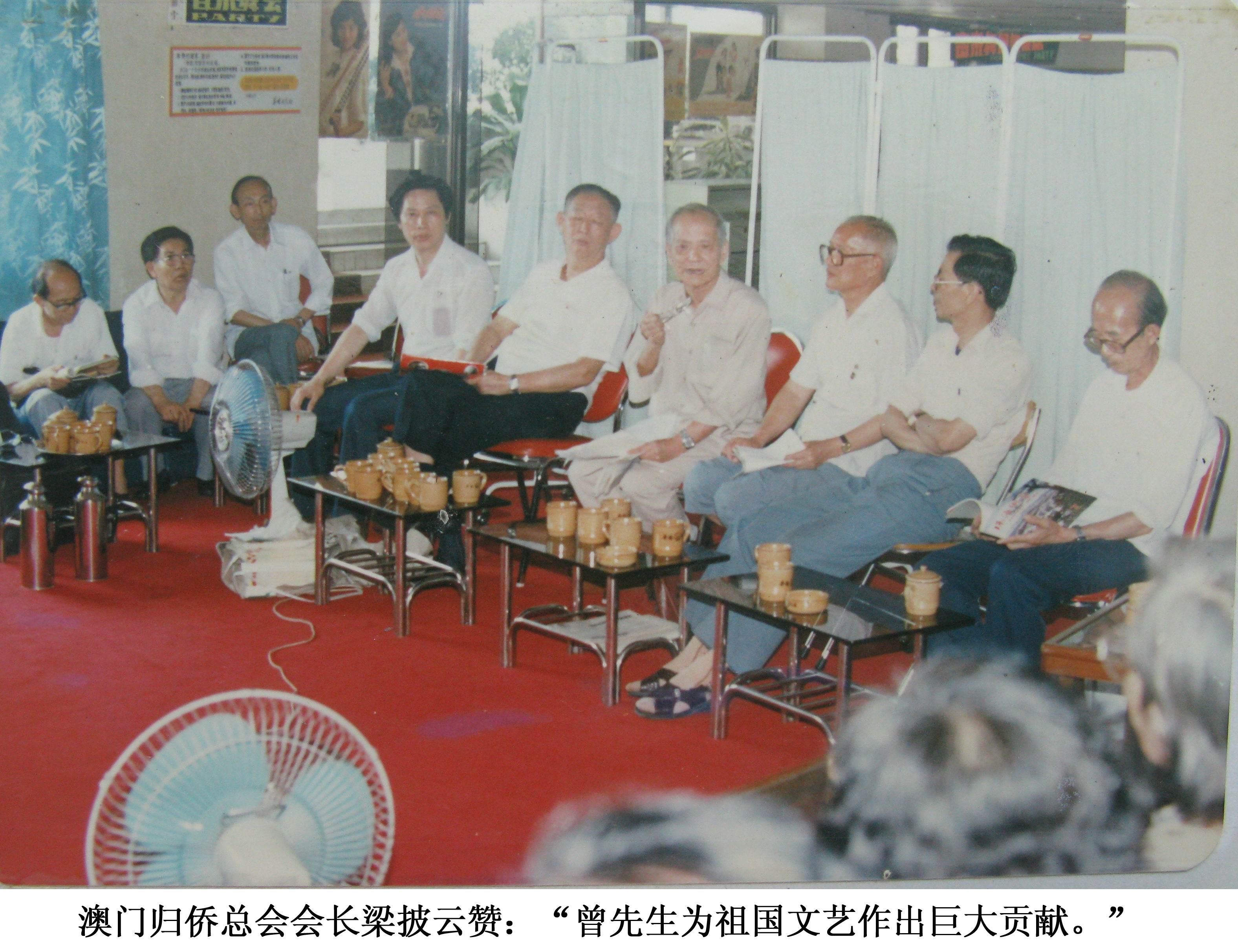 ▲澳门归侨总会会长梁披云赞:“曾先生为祖国文艺作出巨大贡献。”