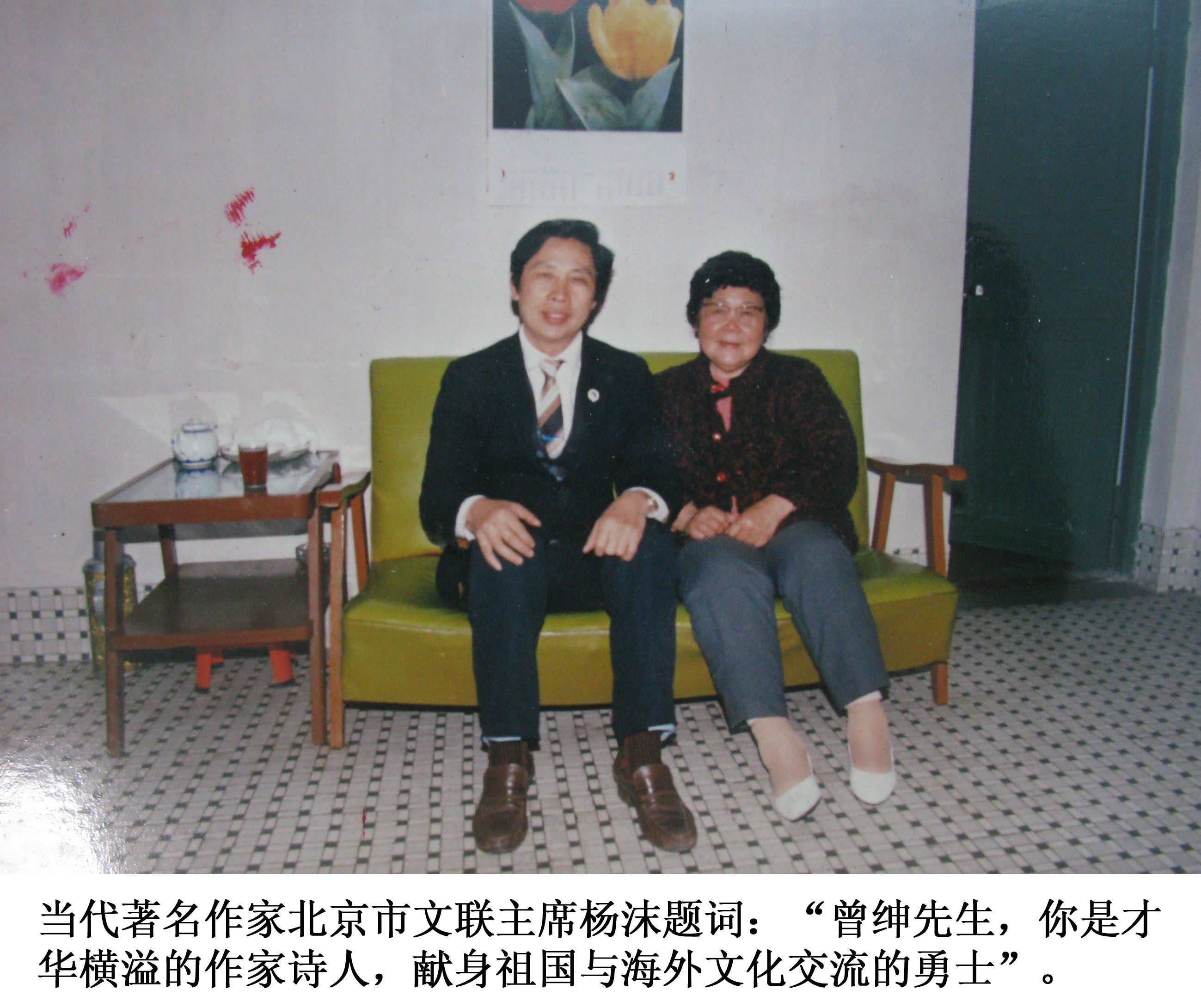 ▲当代著名作家北京市文联主席杨沫题词:“曾绅先生,你是才华横溢的作家诗人,献身祖国与海外文化交流的勇士”。