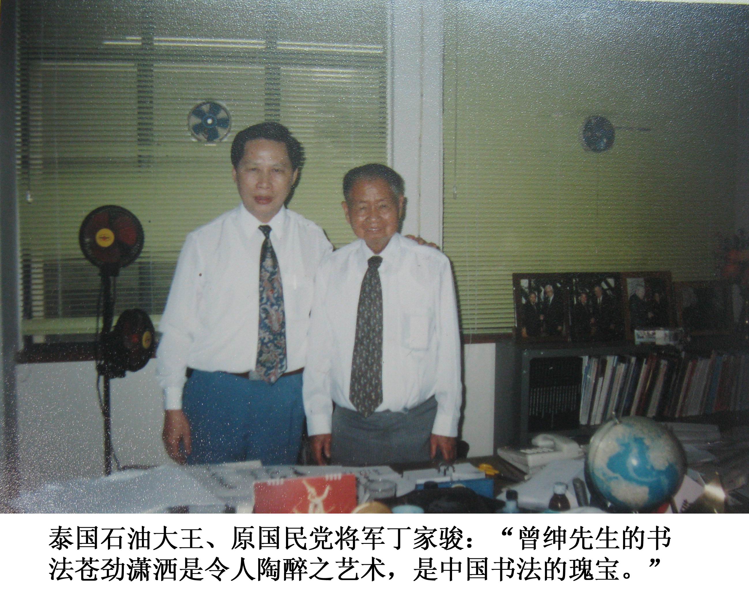 ▲泰国石油大王、原国民党将军丁家骏:“曾绅先生的书法苍劲潇洒是令人陶醉之艺术,是中国书法的瑰宝。”