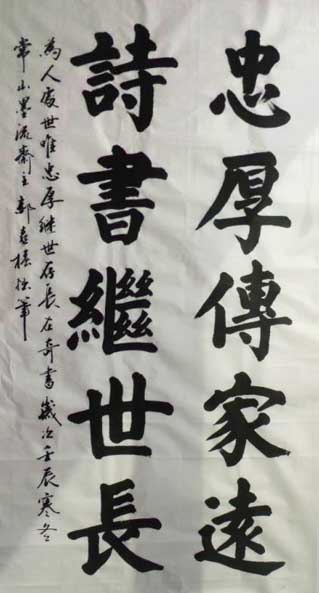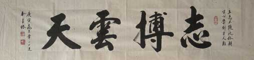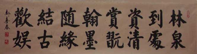 郝喜春,自号:墨流斋主,常山大迂,同祥书社。1954年生,从小热爱美术,偏爱书法。初学柳、颜,后研汉隶,追随历代名家。受著名书法家何世和老师亲传,张松龄老师、傅金铃老师指点,1998年参加书法研讨会时,有幸获得刘炳森、欧阳中石亲身指点沈鹏主席签字指正缺点。2005年结缘张贵银老师斧正,从汉隶鲜于璜碑,综合自身悟性,揉举重、体操、滑冰、舞蹈与书法于一体,善以隶、楷、行草,篆及小楷皆有独到之处,尤以隶书见长。气象雄伟、包罗万有、浑厚深沉、沧古森严、大气豪迈、神韵内藏、独具一格。