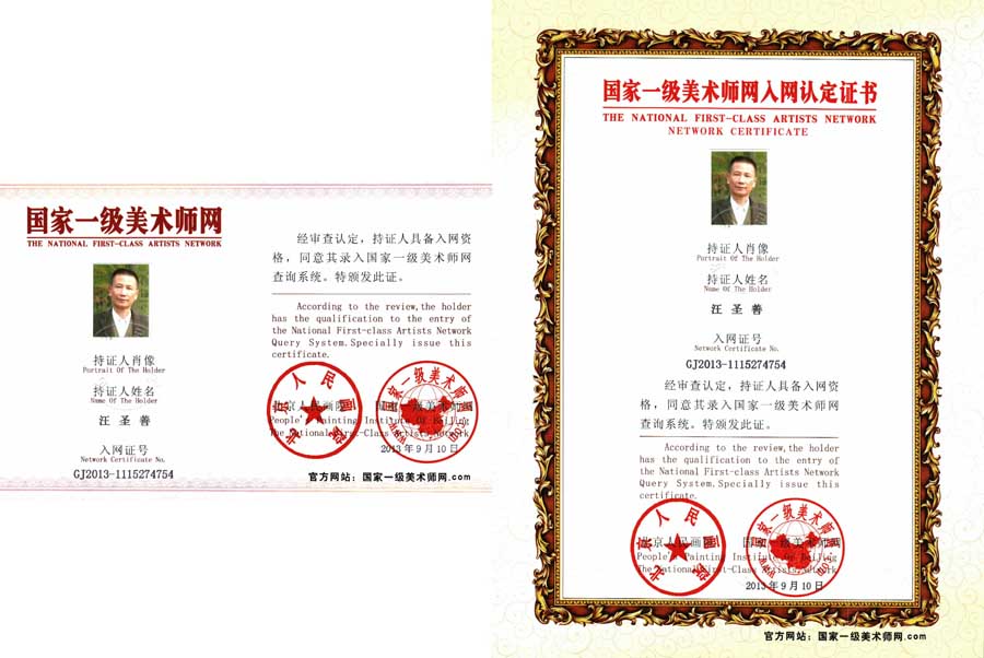 汪圣善,笔名,暮牛,号,三江居士。男,1944年4月生。安徽绩溪人。中国国画家协会理事,中国国际文艺家协会名誉理事,博学会员,高级书画师,中国文化管理学会会员,中国书画名人研究会副主席,中国艺术家交流协会终身名誉主席,世界艺术家协会副主席,世界华人美术家协会荣誉主席,世界华商企业文化促进会特邀书画家,世界书画家协会联谊会理事,一级书画师,国际lsQ900A书画艺术家资格认证中心评审委员,副主席。中国民族文化研究院终身名誉顾问,中国国画院院士,北京人民画院院士,中国书画收藏研究院理事,北京奥林匹克书画院名誉院长,国际羲之书画院名誉院长,北京中国书画研究院高级 研究员,荣誉院长,北京京华兰亭书画院名誉院长,世界教科文卫组织专家成员,中国国际画院副院长,英格兰皇家艺术基金会学术顾问委员会 顾问。