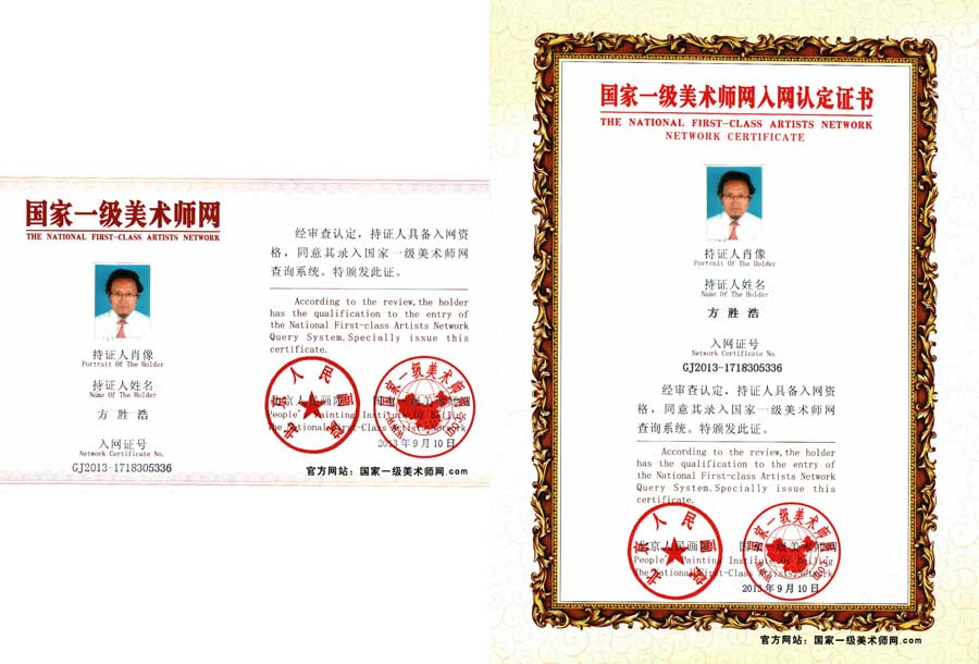 三、获得的荣誉称号有:“中国民族建筑营造大师” 称号(颁奖嘉宾是工程院院士马克俭先生)。 “中国民族建筑景观设计大师” 称号、 2013年荣获温州市首届“瓯江大奖”称号、“中国民族杰出艺术家” 称号、“中国杰出贡献艺术家” 称号、“金奖艺术家”称号。