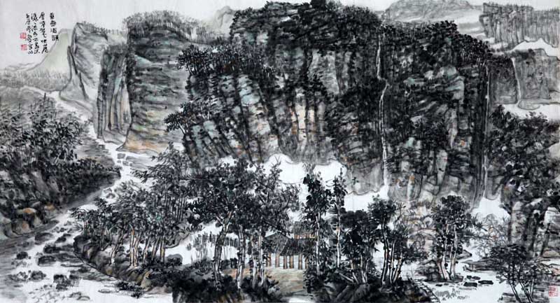 几十年来,全身心投入中国山水画艺术,不断苦心追求其艺术之最高境界,潜心学习和研究历代绘画之笔墨精华,又受教于恩师张仃先生。系统地对山水画的文化内涵和文化理念、美学、东西方哲学及中国哲学史上佛教的禅宗对艺术的影响。庄子主张审美和艺术同宇宙生命力的“天地精神”等美学思想的研究。在中国画革新与发展上,坚持走弘扬民族文化精神为主导的出新之路,不断探索,在山水画艺术创作实践中将历史,大地、山河、玉宇大千归于心象。以写胸中丘壑积淀出雄浑,空灵、博大和崇高的笔墨意境。形成了自己的艺术语言。作品被当代著名画家贾又福、李宝林先生高度评价;“该作品表现的是禅宗的思想,禅学的境界”。