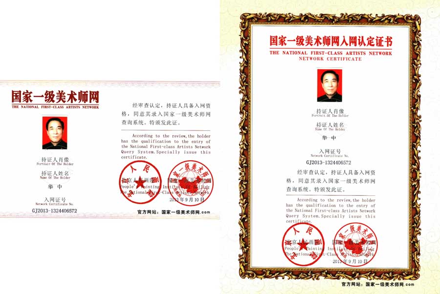 华中,1942年12月出生陕西泾阳。现任中国国际专家学者联谊会国际专家,中国诗书画大师。国际工笔重采画研究会理事,中国书画家协会理事、北京华夏国艺书画院客座教授、中国香港艺术家协会荣誉会长、北京书画收藏家协会会员等。入编全国书画大赛有:《2003年中国书法、美术年签》、《中国当代书画家作品集》、《中华书画艺术博览全集》、《中国文人书画家精典》、《德艺俱佳书画艺术家作品精选》、《庆祝香港回归10周年中国书画名家名作荟萃》(及编委)、《中国书画名家名作典藏》、《中国当代书画领军人物精品集锦》(及编委)、《魅力夕阳·中国中老年书画精品特辑》、《当代书画艺术家梅兰竹菊精品鉴赏》、《中国百科优秀(论文)金奖论文集》等。荣获多个荣誉称号的有:“国际文化交流特别贡献奖”、“中国当代书画名家”、“中国当代优秀书画艺术家”、“中华书画艺术精品集”、“当代文人书画艺术家”、“当代最具魅力书画家”、“改革开放30周年·世界优秀华人杰出成就金奖”、“中日文化交流使者”和“世界杰出华人艺术家”、“国际知名文艺家”、“首届中国文艺功勋奖”金奖、同时授予“中国文艺功勋人物”在《共和国杰出国学专家优秀文集》评比中《书山有路》一文获国学创新理论“特等奖”。荣获“百年中华国学杰出贡献奖”、“国学专家奖章”荣获者,等多项荣誉称号。荣获各种大奖的有:国际金奖3次首届金玉杯全国诗书画大师成就奖金奖。全国书画大赛金奖18次;银奖2次;一等奖4次。自从事本职工作以来,立足岗位,扎实工作,对事业持有崇高的思想境界和远大的目标,始终站在党和人民的立场上,保持坚定的政治方向,时刻不忘自己的神圣职责和人民的重托,从大局出发,兢兢业业、无私奉献。在工作中时刻将自己植根于人民群众的沃土之中,充分发挥自身特长,调动内在动力,创造性地紧密团结在——胡锦涛为首的党中央周围,认真贯彻党的十七大精神,解放思想,与时俱进,开拓进取,加快发展,为提前实现全面建设的小康社会、开创现代化建设的新局面而努力奋斗!深入实际,锐意进取,不遗余力地为促进经济建设和发展做出积极贡献。取得了社会效益和经济效益的同步增长,精神文明和物质文明的新局面。由于您的业绩突出,贡献较大,赢得了上级领导的表彰和社会各界的好评。多次荣获“各种大奖”及各种“荣誉称号”。