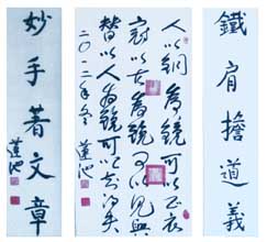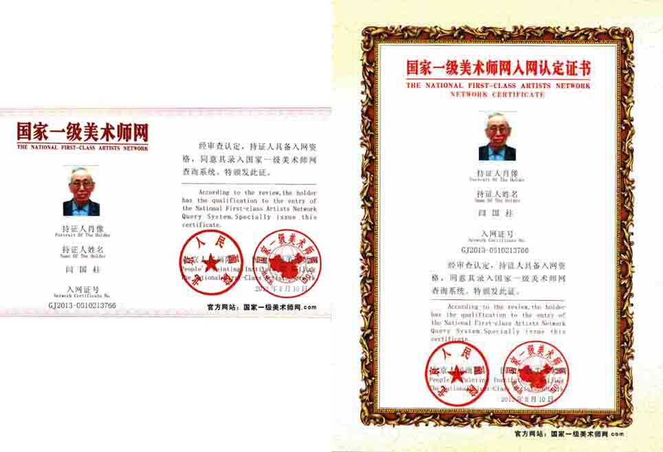 闫国柱,字莲池,男,汉族,1944年生,甘肃渭源人(祖籍甘肃通渭),中共党员,初中学历,自幼酷爱书法,处境窘迫,寒暑不辍。长期从事学校教育教学工作至退休。现斌闲习书,作品荣入建国60礼辑《中华名家翰墨典藏》授予共和国六十年文艺创优突出贡献奖。为无锡书法研究会员,《书法艺报》通讯员,兰州聚文书研究员。毕业于无锡书法函授研究班。临摹了许多名家法帖,吸取了兰亭营养,四书皆为,特长行草,最专八鹅,近习毛体,作品在鲁南之光国际书画大赛中,获最佳优秀奖,在纪念中国工会七十周年大赛中获一等奖,作品入编《精品集》,部分作品先后编入《世界书法篆刻家通联大全》、《中国当代名人录》、《世界书画名人录》等典籍。作品曾参加香港拍卖会,另在毛主席诞辰110周年、纪念抗战胜利六十周年书画大赛中获奖入集,其作品在潍坊国际艺术碑坊中久存,曾获“中国豪杰艺术家”称号,入编《国际知名艺术家大辞典》,并颁证,同时颁证聘为国际知名文艺家联合会主席团副主席,授予“国际知名文艺家”称号和“当代著名红色艺术家”称号。2011年5月获“首届中国名家红色经典艺术成就特等奖。” 2013年授予“中国传统美学大师”称号。润格:“八鹅图”人民币一万元,其他作品面议。