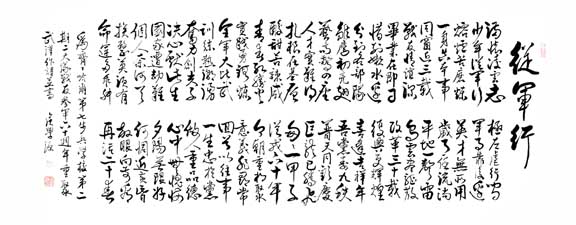 书法艺术功底深厚。五岁起习柳帖,至十五、六岁,行楷书打下扎实基础。入伍后步校学习,连队工作停笔六年,1957年起重拾毛笔,繁忙的军务之余,坚持练笔,并应用于工作实践、养成了以毛笔书信、处事的习惯。1997年起,深入学习书法历史、理论、名碑名帖,重点研习草书,以古诗名赋及自撰诗词为主,创作了大量的草书作品及其它书体作品,在国际国内获多项重要奖励及荣誉称号。