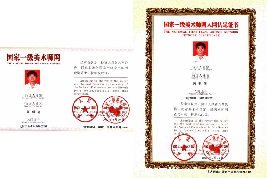 黄明忠(1954—)男,汉族,字晗生。福建云霄县人,祖籍南靖。自幼随父学画,又师承闽南著名画家黄士杰(与周恩来一起留法)。出版有《黄明忠画集》、《黄明忠作品选》。现为中国艺术研究院文研中心创作委员、一级美术家、国际美联会员、香港东方文化中心书画研究部研究员、南岭书画院特约画家等。