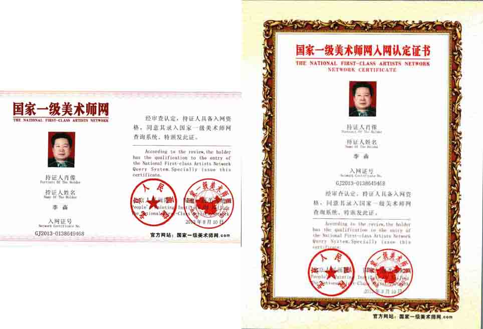 主要业绩:书法诗词国内外获奖610次,其中金奖370次,授予本人最高九段段位,在世界华人风云人物奖书法作品被评为世界金奖并定为一级精品,一级艺术品。书法诗词已入《中国艺术大家》、《中国书法家选集》、《世界诗词全书》及《李森书法作品集》、《李森诗集》等800余部发表诗词千余首。