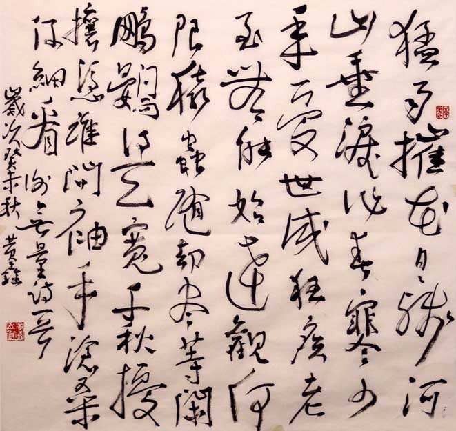 黄鑫(1963— )又名黄金,字显雄,天乙堂主人,笔名山中秋果,号郁林居士。福建罗源人。中国柳倩艺术研究学院首届硕士研究生,治学中国山水画,书法工行、草书、篆刻。现为中国工艺美术家协会副主席、国家一级美术师、大河洋美术馆主、福建省通俗文艺研究会诗联书法艺术专业委员会委员、西安中国画研究院副院长、中国艺术研究院特邀创作员、中国书画家研究会会员,黄河书画院特邀书画家,上海民族画院院士,河朔书画院理事,《中国国际书画专家学者全集》顾问编委等职。作品入选中华人民共和国文化部“庆祝中华人民共和国成立五十二周年”---[中华魂]作品展,中华人民共和国文化部[纪念中国人民抗日战争胜利60周年.中华当代艺术家作品展]获奖者。作品多次在国内外书画大展赛中获奖,作品被多家美术馆、博物馆和海内外收藏家收藏。作品传略入编《当代书法家大辞典》《世界当代书法篆刻家大辞典》《世界华人文学艺术界名人录》《中国历代名家宝典》《中国书画名家论坛》《中国书法、中国美术500强作品集》《中国古今书法美术名家选集》《国际现代书画名家教授大辞典》《中国世纪专家》《世界当代著名书画家真迹博览大典》等三十多部典籍。被授予“中国书法500强、中国美术500强提名奖” “中国历代书画名家名作奖”、“二十世纪国际艺术名家教授成就大奖”以及“世界书画艺术名人”“国际书画艺术名人”、“国际金奖艺术家”等荣誉称号。《人民日报》海外版等国内新闻媒体报道。http://www.tudou.com/programs/view/Y-Bx0YX9gwo/