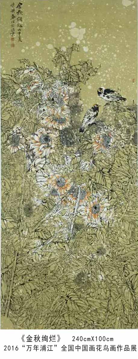 《金秋绚烂》入选中国美术家协会举办的2016“万年浦江”全国中国画花鸟画作品展。