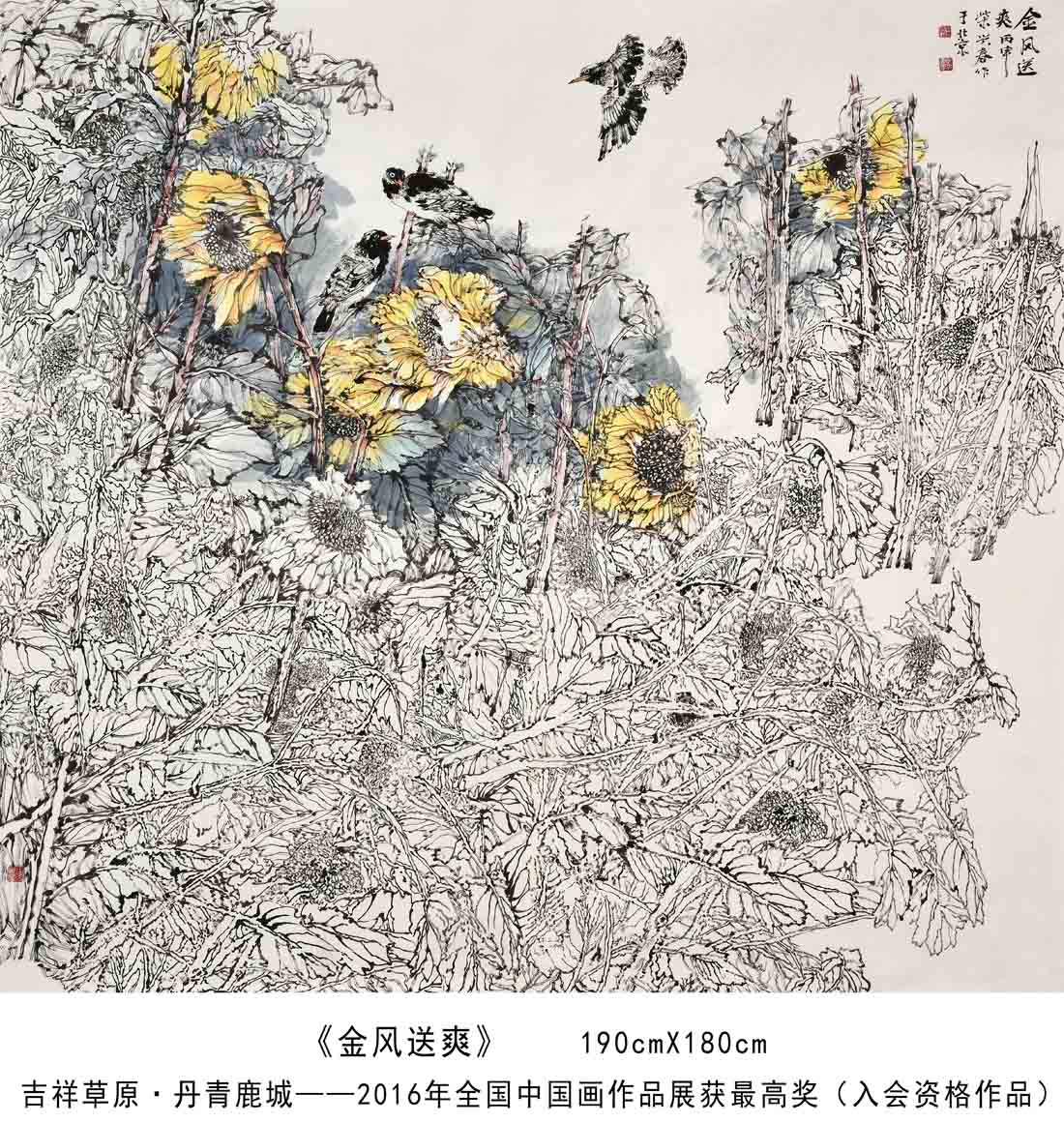 2016年《金风送爽》在由中国美术家协会举办的吉祥草原-丹青鹿城——2016年全国中国画作品展中获最高奖,为入会资格作品。