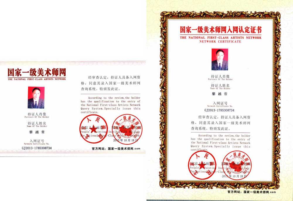 黎越常,1949年生、号月里老人,我国著名艺术家、浏阳人氏。曾任全国烟花爆竹标准化技术委员会秘书长及全国烟花爆竹标准化中心副主任。现为中国国家书画院副院长、国家高级工艺美术师、国家一级美术师、世界华人艺术家、中国工艺美术家协会理事、中国艺术工作者协会终身名誉会长、中国书画名家研究会理事、中国国学研究会研究员、中国书法美术家协会理事、湖南省美术家协会会员。他的中国画作品多次参加全国、省、市展览并多次获奖,不少作品被外国元首和国内纪念馆与国内外友人收藏;应国内外有关邀请多次为他举办了个展和联展,出版了个人专集五部。其作品与业绩先后被载入五十几部大型艺术辞典、受到了国内外艺术鉴赏和收藏家的青睐,被授予中国当代最具市场潜力、最具收藏投资价值的30位中国画艺术家之一。2004年在中央文献出版社在《强国丰碑》大型艺术专集中作了题为《著名艺术家—黎越常》的专题报道。应邀出席了国庆55周年庆典、受到了国家领导人接见并合影。2010年被中国国学研究会授予“辛亥百年—中国艺术大家”的称号。2011年被中国少数民族文化艺术基金会,北京市怀柔区佛教协会等单位授予“中华慈善艺术家”的称号。2011年中国书画收藏频道、央视、北京卫视、凤凰卫视联合录制了《访著名画家黎越常》纪录片在央视各媒体长期报导、其作品与肖像被制成喜迎党的十八大的《中国邮册》与邮票发行。(点击360网、百度网、谷歌网输入“黎越常”搜索阅看。