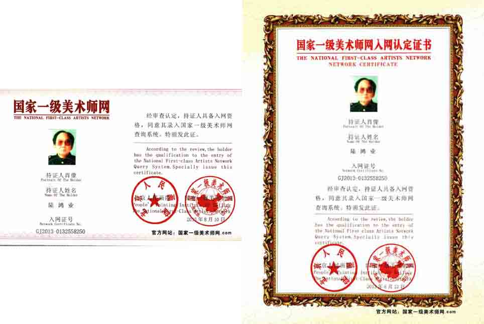 陆鸿业,笔名歌星,1933年生,山东省平度市人,中国民主同盟。青岛市国家税务局退休干部,大专学历。从50年代开始文学艺术创作至今,已在全国报刊上发展诗歌、散文、寓言、儿童诗及讽刺诗近千首(篇)并被全国近二十本诗选集选用,多次获奖。期间又学习国画,作品常见于报刊,如《中国书画报》、《世界知识画报》、《山东作家》、《半岛都市报》等。作品及传略载入 《山东作家辞典》、《中华书画宝典》、《中国当代书画家代表作典库》等二十余部大型书画集。作品荣获五次金奖、一次一等奖、三次银奖及多次优秀奖和精品奖,并获得“中国当代百名优秀书画家”、“首届当代百名德艺双馨书画家”等荣誉称号。有的作品被画圣吴道子艺术馆,东韵书画艺术研究院等多家艺术院及个人收藏。现为中国书画艺术委员会会员,山东省作家协会会员,东方艺术研究院顾问,东韵书画艺术研究院名誉院长,一级书画师,燕州书画院高级院士,北京美阿国际艺术中心签约书画家,中国文艺画报荣誉理事,青岛中山书画研究院院师。