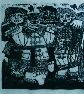 1980年版画《打豆》参加全省农民画展。
