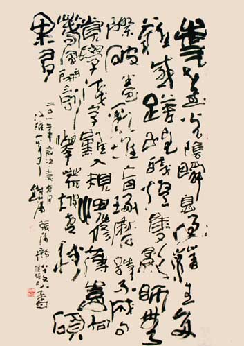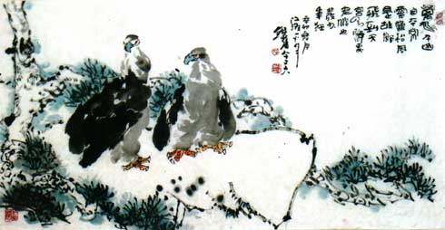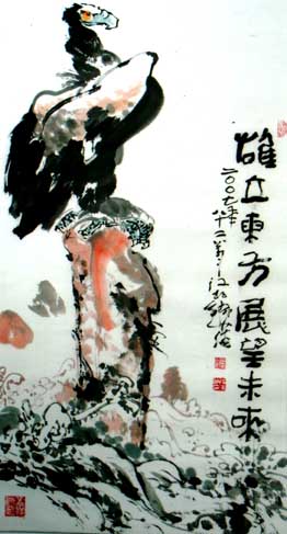 铁蒲,1926年生(88岁),安徽凤台人,现系国家一级美术师、中国美术家协会、中华诗词学会会员、中国诗书画大师、中国诗书画联盟团名誉主席,联合国国际文化艺联中国委员会授予最高艺术传承人物。中国国宝级艺术家,中国国画院、中国国学院、中国老年书画院名誉院长,硖石诗词顾问,茅仙洞道协名誉会长。幼因国难家破父丧而失学,一生逆境苦学,只凭一颗坚忍不拔的心,艰苦自学,逆水行舟。1943年获张大千函教,播下了苦学书画的种子,长年岁月,争分夺秒,外地求师,千辛万苦,埋头耕耘数十年,铸成了贞刚有质、超脱不俗的作品风格,熔诗、书、画于一炉,获“三铁“(铁老、铁笔、铁骨)之誉,赖少其大师据此命笔名“铁蒲”。历年获大奖数十次,入编多类典集。1988年与子张海在合肥举办父子书画展;1944年在深圳举办专展;1998年出版《铁蒲书画集》;2012年八十七岁高龄赴深圳,由岭南美术出版社出版《铁蒲诗书画集》和《铁蒲足迹吟》,2012年由北京出版《黄永玉、韩美林、铁蒲园艺大师书画集》,入选《中国书法名家全集》由中国文艺家联合会授予“中国艺术大师”称号并赠予牌匾,受邀参加合肥得乐拍卖书画专场,拍卖成功,现正衰年变法中。