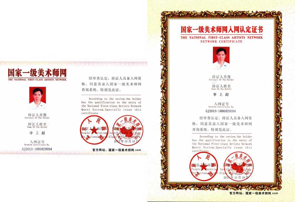 李上超, 1950年10月生,祖籍广东化州,先后毕业于中国书画函授大学国画专业,湛江师范学院美术专业。现任英国皇家艺术研究院荣誉院士、客座教授。北京人民画院国家一级美术师,宋庄国际书画院院长,中国国际画院副院长等职务。李上超擅长中国画,作品曾多次参加国内外各类书画大展获奖30多次,并荣获“国际银奖艺术家”、“国际知名文艺家”、“全国首批行业优秀人材模范”、“中国艺术风云人物”、“中法艺术交流名人”、“国际高端文学艺术人物”、“中国文艺国际新名片人物”、“首届国际华人书画名家终身成就奖”、“首届国际文艺家金马奖”、“青花杯·中国传统文化最高成就奖”等荣誉称号。李上超的主要成就有作品及传略入编《世界当代著名书画家真迹博览大典》、《中国文化名人大写真•美术家卷》等二十多部大型画册,学术论文代表著作2篇《浅淡中国绘画的“六法”论》和《略论中国画的特点》发表于《文化艺术与文化产业论集》。突出贡献是李上超的中国画继承和发展了中国画源远流长的美学传统。作品格调高雅,大气自然,外秀内刚、美妙婉约于古朴中见雅趣,平淡中见气韵,传统功力深厚,熔古今于一炉。历经几十年的笔墨耕耘,悟出了中国画“变形更胜于写实”的道理,作品更强调和突出物象的“精神面貌”和“气韵生动”,从原来的“以形写神”渐向“遗形取神”的方向发展,几经风霜磨砺,上下求索,渐成自家风貌。