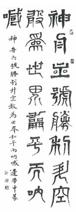 边学中(号泳翁),男,1934年10月生,河北省任丘市(县)人。出身书香世家,六岁时开始学习儒家书籍,多在夜晚习写毛笔书法。大中小各种字体,大字习写魏碑,小字习练赵体,篆隶草则临写各类碑帖与墨迹。几十年如一日,追究研习不辍,造诣精深,堪称大家。