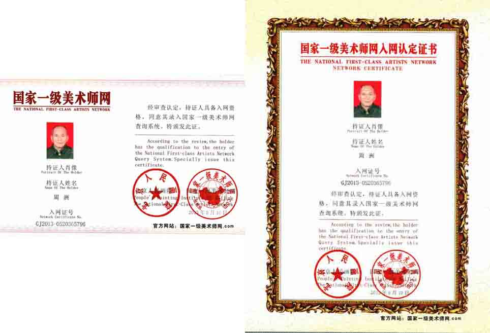 周洲,一九三一年生,湖南宁乡人,中共党员,湖南地质水文二四七队退休。中国书法家协会会员、海内外书法艺术联谊会理事、中苑(北京)文化艺术交流中心书法院副院长、中华名人丛书编委会编委、中国百年文学金典副主任、北京人民画院院士、中国国学研究员。作品入编《当代书法名家精品拍卖会》、《中华书法电视大奖赛精品集》、《中国百年文学金典》、《中华老年艺术宝典》、《庆祝香港回归十周年获奖作品博览》等几十大典集中,大型镜画面《梅花图》、《百寿图》已被刘少奇纪念馆收藏,在国家级书画大赛中多次获大奖、勋章。二零零九年十二月,中国国际艺术品品牌资质认证委员会授予周洲顶级品牌证书。其作品被认证为中国艺术品顶级品牌,并授予世博会一套金质奖牌。二零一一年在参与中国对外文化交流活动中,被授予盛世中华优秀共产党员代表。二零一二年一月,周洲作品(部分)已被中华人民共和国国家版权局颁发了著作权登记证书。二零一二年十月参加与书画活动被中国艺术名家研究院授予中国艺术大师荣誉称号。传略已入编《中华名人大典》、《世界名人录》、《世界优秀专家人才大典》、《中国功勋人物》等,其事迹已在日本、英国、美国、意大利等国家和地区广为传播。深受国际关注。