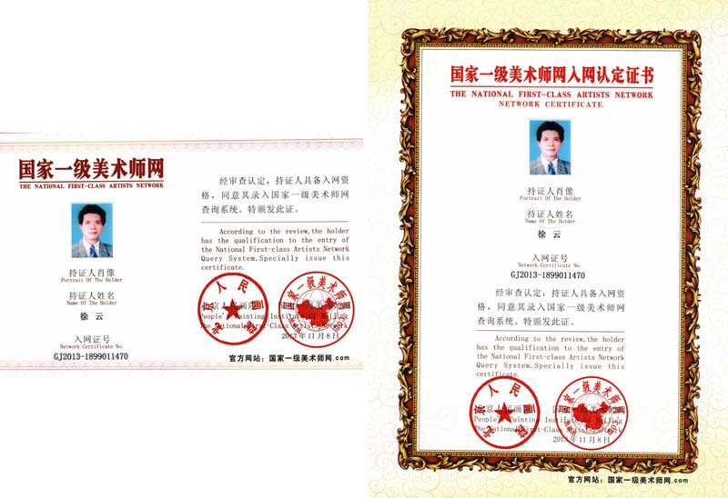 徐云,字云飞,号武当墨樵,一九四九年十月生,湖北郧县人。本人自幼酷爱书法,后在北京书法高级研修班学习。其书法作品曾在中国国家博物馆、中国军事博物馆以及日本、加拿大、澳大利亚等国展出。并获得由文化部举办的“国际博览会”书法金奖;由中华名人协会、中国法研究会主办的“纪念毛泽东诞辰110周年”书法一等奖;由中国书画收藏杂志社主办的“庆祝中国首次载人航天成功”书法艺术金奖;中国名家书画院、北京人民画院、中国文艺协会联合授予“首届中国名家世博艺术杰出成就奖”等。作品被国内外多家收藏。作品入编由香港出版的《二十一世纪中国书法篆刻集粹》、北京出版的《中国书法家精品集》、《中华魂——庆祝中华人民共和国成立五十二周年书画集》、《国际文化博览会书画艺术大型史册》、《中国当代著名书法家珍品选》、《全国当代书画名人名作精品集》、《情系奥运中华书画艺术世界行》、《20世纪国际现代书法篆刻名家作品荟萃》以及《世界当代著名书画家真迹博览大典》等多部书集。创作的诗词在各级刊物发表,并入编《中华传统诗词精选》、《世界汉诗大观》等诗集。徐云现为中国艺术家学部委员会委员、中国艺术研究院创作委员、中外名人研究会会员、中国书画家协会理事、九州国际书画院院士、世界汉诗协会会员、中国科协湖北分会会员。其传略被《中国书画名人大全》、《世界当代书画家大辞典》、《中国当代名人录》等所收录。被当代书画家资格认定委员会授予“当代百名最佳书法家”、文化部授予“当代优秀书画艺术人才”,被文化人物杂志社授予“感动中国杰出文化传承人”,被国际美术家联合会、中日韩新书画家友好联盟、比利时华夏艺术研究院等十六个在世界有影响的艺术团体联合审定授予“世界书画艺术名人”称号。被世界汉诗协会授予“世界汉诗艺术家”称号。参加了在北京人民大会堂举行的全国书画名家国庆座谈会,受到国家领导人和联合国驻中国官员的接见。