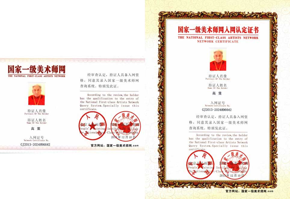 其中《感动人生》大会发言留诗,国画锦旗入六十年展览双年鉴,并吸入中国诗书画研究会研究员。长征、奥运、世博主席诗词节纪念白求恩书法获国际交流展金奖。六十年国庆大阅兵(亚运辛亥建党九十周年)诗词金奖入《中华百年国粹》。并认定为特级书画师。全国大型公益翰墨飘香系真情书画活动获金奖,定为一级书画师职称。2012年12月《东方书画》荣誉称号。京字第NO.127号“高策经典书画集”,此书发给全国副省级领导干部、全国人大、政协委员等处。2013年5月,新民市诗词楹联学会迈进《中华国粹年鉴》展堂。以诗的形式歌颂了新民市从无到有创建了新民市诗词楹联学会到现在发扬光大!新民市有了诗的天地,人民诗的乐园!全体会员正为争创新民诗大市而努力奋斗!