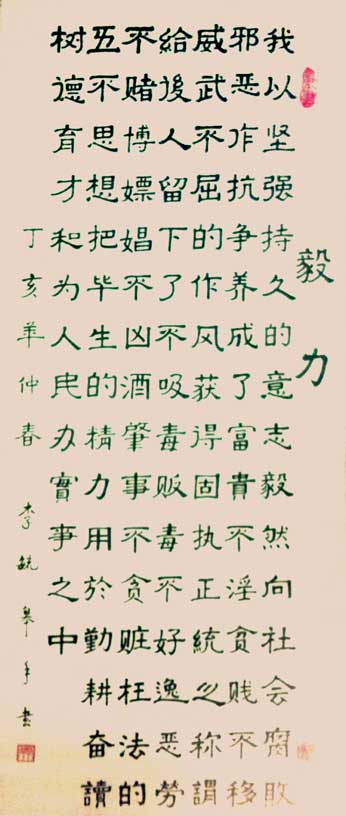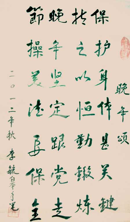 李毓皋,男,汉族,一九三五年十月十一日生,中华人民共和国云南省丘北县城,丘北县委会农村工作部副部长,一九九四年十月退休,自悠爱好书法,退休后重温,一九九五年加入县老干书协,一九九七年先后参加州、省老干书协,一九九八年参加县诗词自学小组。 一九九九年创作《庆回归》楹联,北京伯乐文学社收入从书汇编; 一九九九年自赋《寒舍吟》获首届东方杯二等奖;